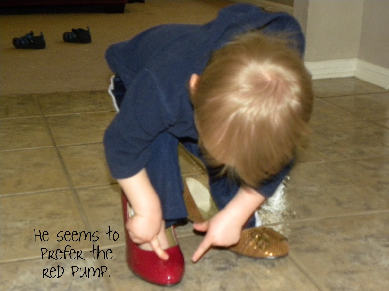 Love the shoe pictures. Karim was way too into ladies shoes at that age and it lasted a while. He definitely preferred the most elaborate, highest heels he could find. One of his favorite places was the Mosque because we don't wear our shoes in and the shoes all stay on a big shoe rack in the lobby. He would spend a good amount of time going through them until he found just the right pair to walk around in. I got a couple comments from moms who were shocked that I allowed him walk around in women's shoes, but I thought it was just cute and hilarious.